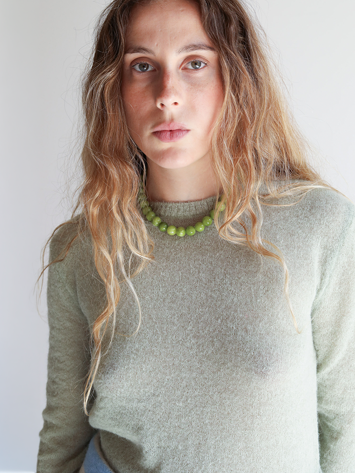 Prima di lavare, ti consigliamo di rimuovere delicatamente gli eventuali pallini che possono formarsi sulle maglie in lana a pelo lungo: un fenomeno naturale della fibra che si gestisce facilmente con un pettinino specifico.