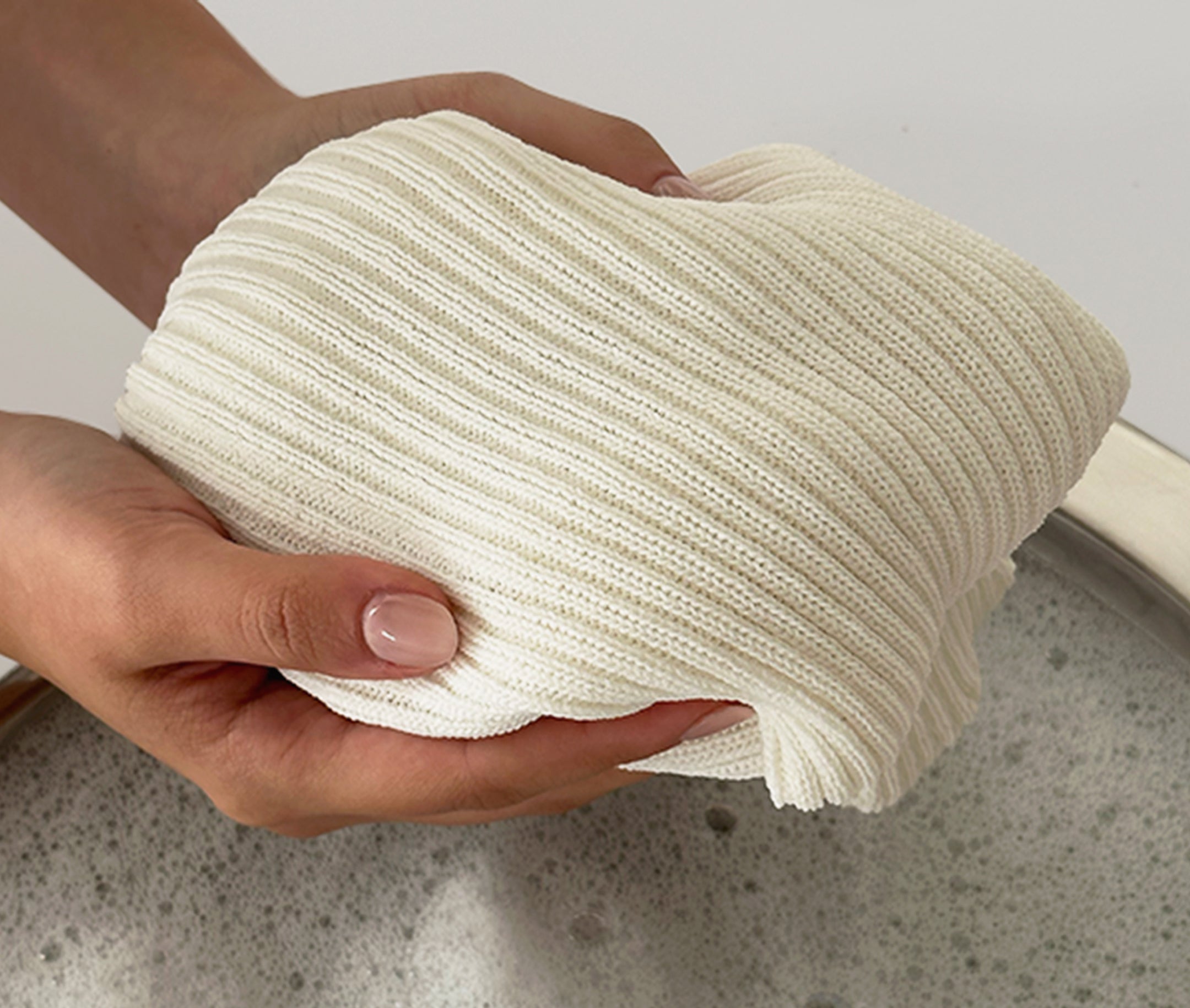 Before washing, gently remove any pills that may form—this is a natural characteristic of the fiber and can be managed with a dedicated fabric comb. For our 100% merino wool products, we use combed yarns, which are naturally more resistant to pilling.
