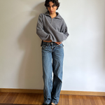 English rib-knit zip-up sweater with side vents. Loose and comfortable fit, perfect for transitional and colder months. Ideal with denim or wide-leg trousers.