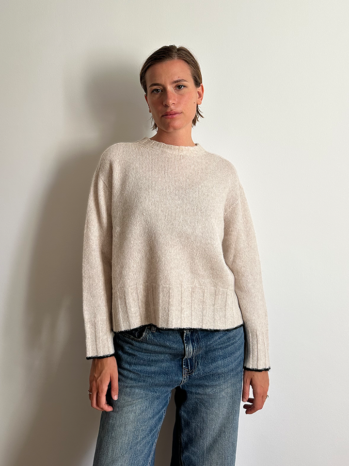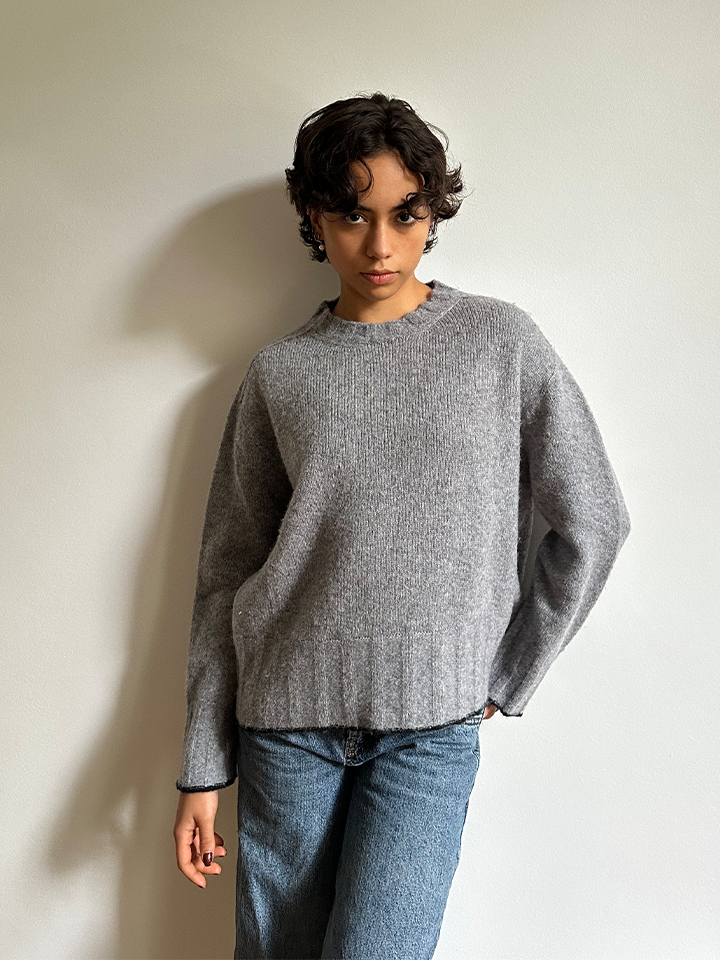 Crew neck sweater with wide ribbed hem and contrasting detail. Loose and comfortable fit, perfect for the colder months. Ideal with denim or wide-leg pants.