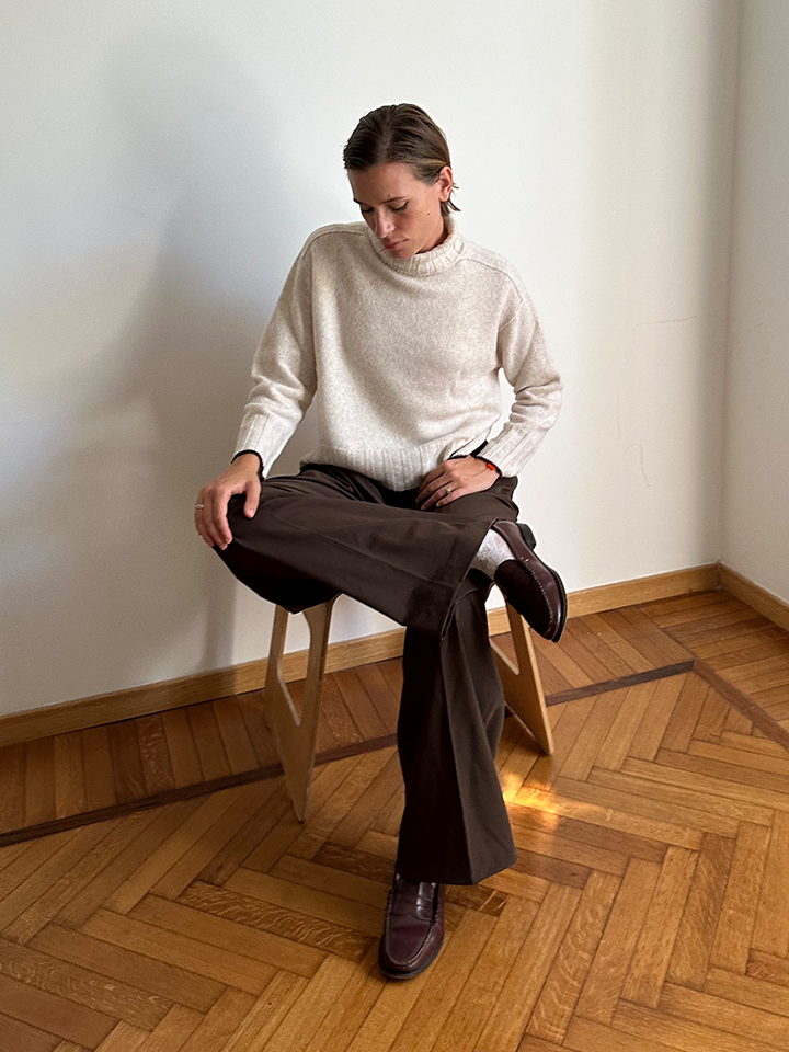 We recommend hand washing in cold water or using a low-temperature wool cycle without spinning. After washing, let the garment dry flat, away from heat sources, and avoid the dryer. If necessary, iron at low heat with a protective cloth.