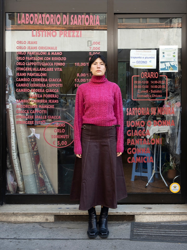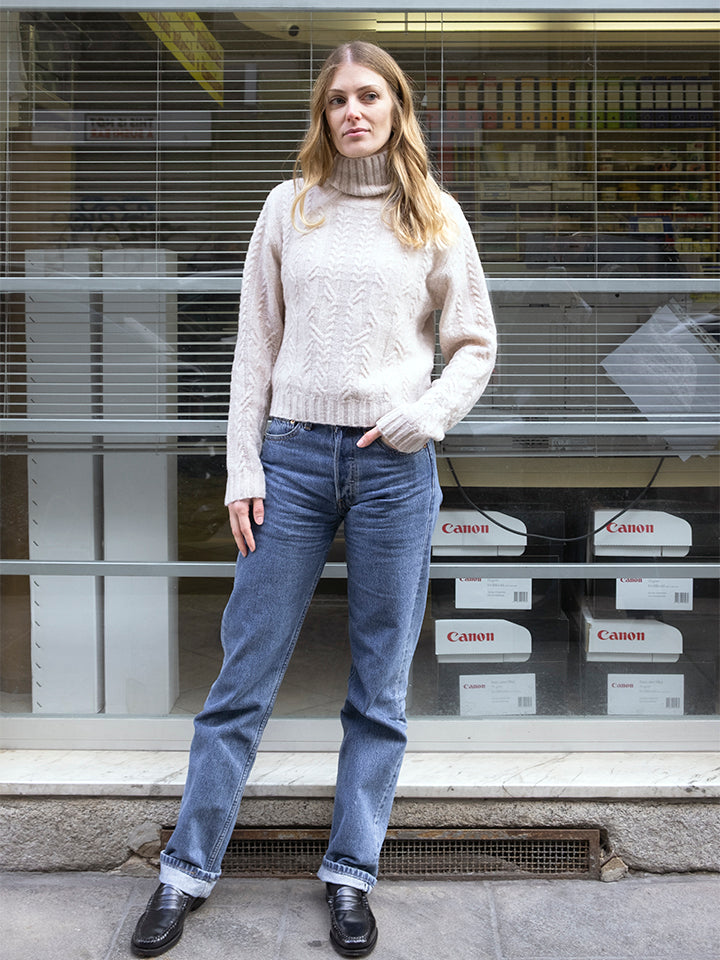 Si consiglia il lavaggio a mano in acqua fredda o, in alternativa, un ciclo lana a bassa temperatura e senza centrifuga. Dopo il lavaggio, lascia asciugare il capo in piano, lontano da fonti di calore, evitando l’asciugatrice. Se necessario, puoi stirarlo a bassa temperatura con un panno di protezione. Conserva la maglia piegata e non appesa, così manterrà sempre la sua forma originale. In generale, se non necessario, è preferibile far arieggiare il capo piuttosto che sottoporlo al lavaggio.