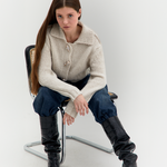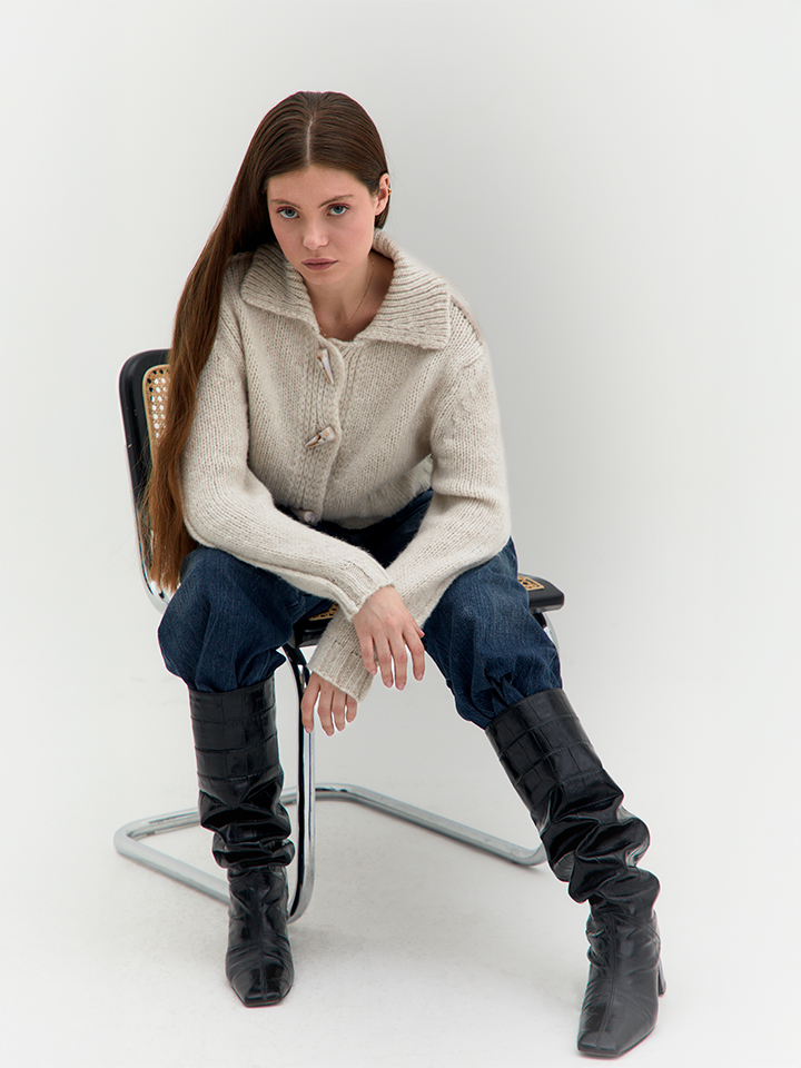 Si consiglia il lavaggio a mano in acqua fredda o, in alternativa, un ciclo lana a bassa temperatura e senza centrifuga. Dopo il lavaggio, lascia asciugare il capo in piano, lontano da fonti di calore, evitando l’asciugatrice. Se necessario, puoi stirarlo a bassa temperatura con un panno di protezione. Conserva la maglia piegata e non appesa, così manterrà sempre la sua forma originale. In generale, se non necessario, è preferibile far arieggiare il capo piuttosto che sottoporlo al lavaggio.
